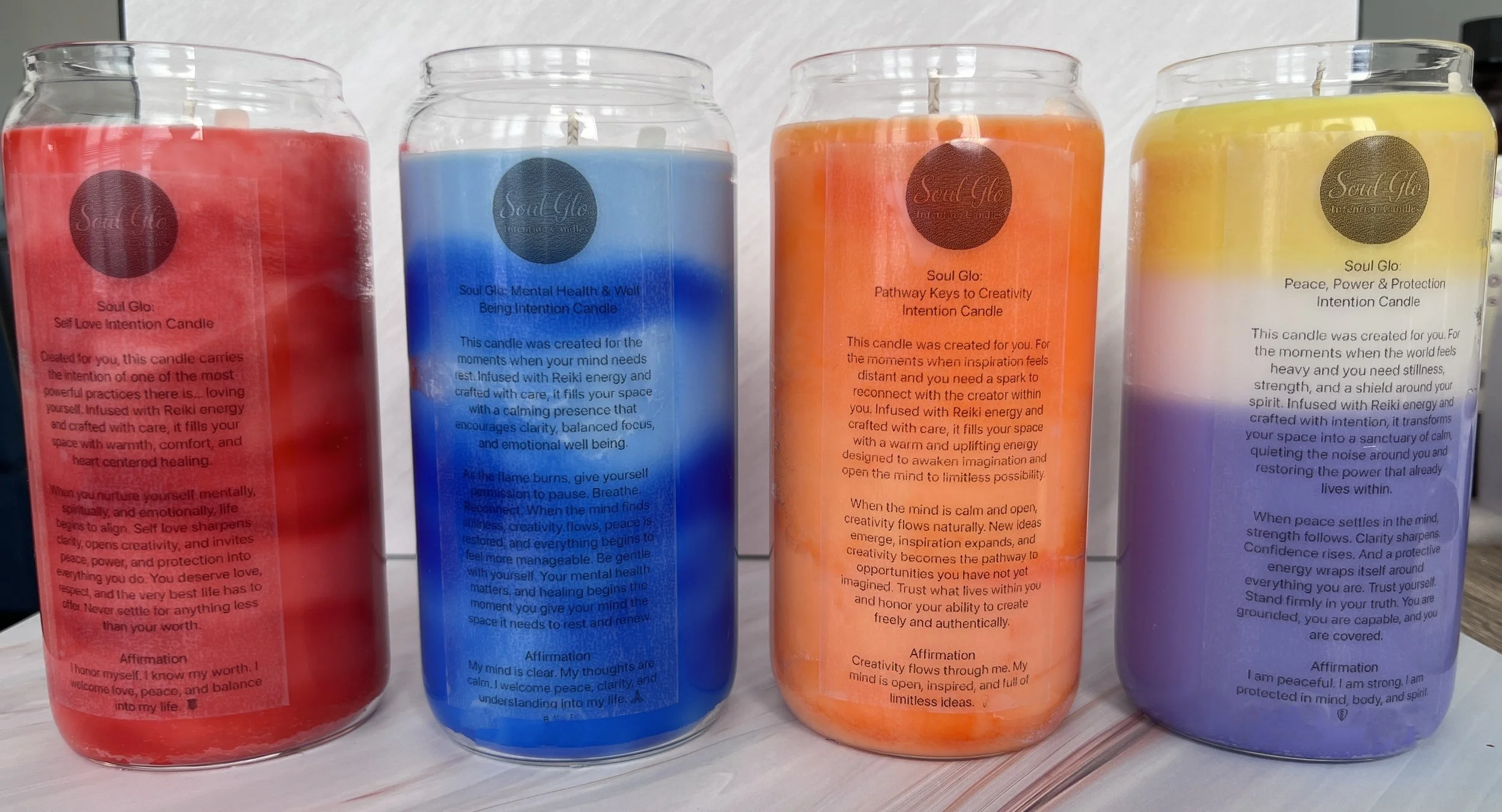 Soul Glo Intention Candles were created as an extension of this vision. Each candle is Reiki-charged with care and thoughtfully designed to encourage mindfulness, inviting you to pause, breathe, and return to your inner calm.